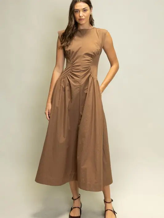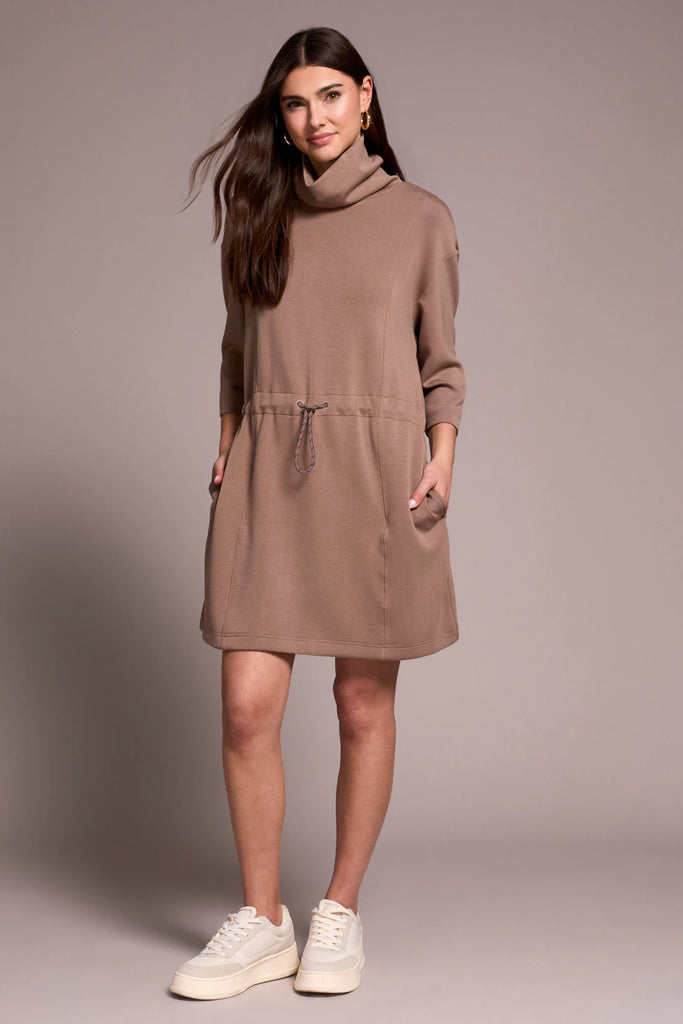 Techno Lux 3/4 Sleeve Funnel Neck Dress -- Fossil