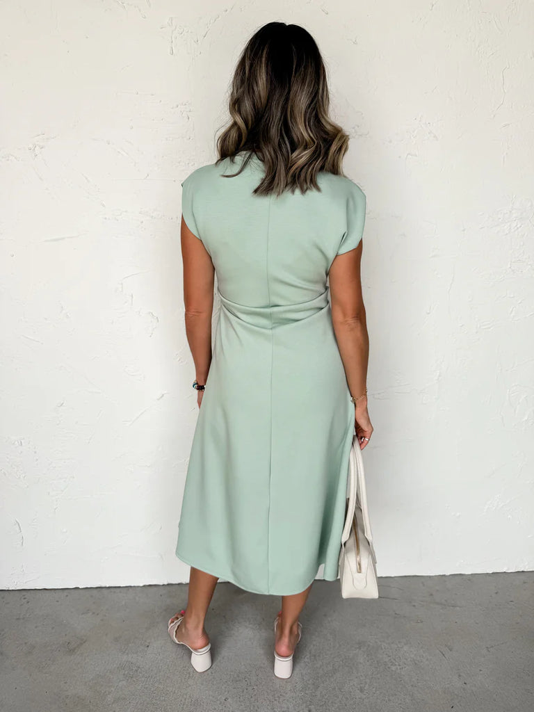 Minimalist side pleat detail midi dress -- Navy