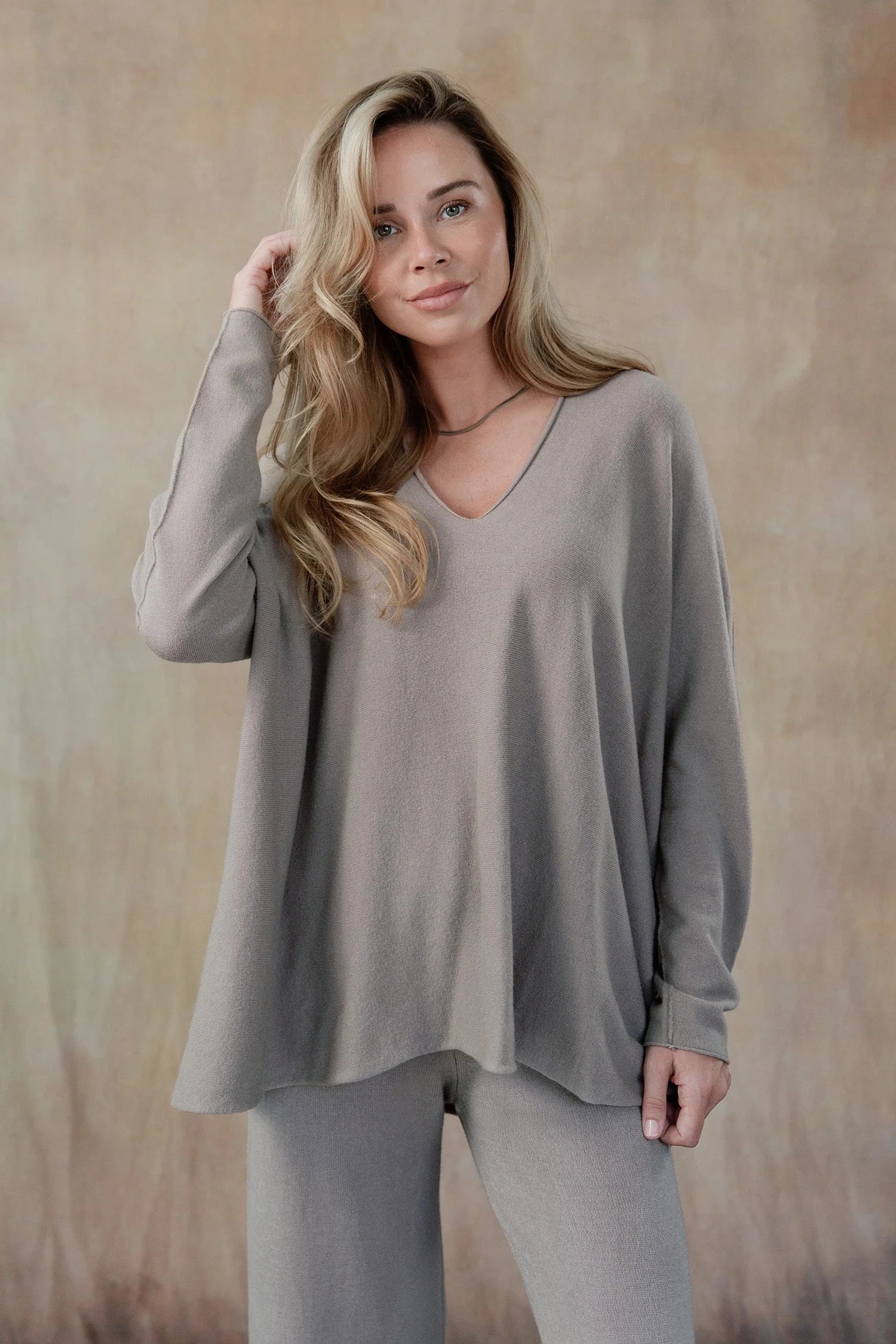 Indulge in cozy elegance with our Claudia V-Neck Sweater, crafted from irresistibly soft knit fabric that feels like a dream. This fan-favorite piece features a flattering neckline and high-low hem, creating a drapey silhouette that pairs beautifully with our Cleo Sweater Pants. Part of our Mix-and-Match Knitwear capsule.