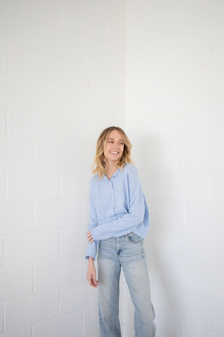 Piper Cardigan sweater -- Sky Blue - S is backordered and will ship as soon as it is back in stock.