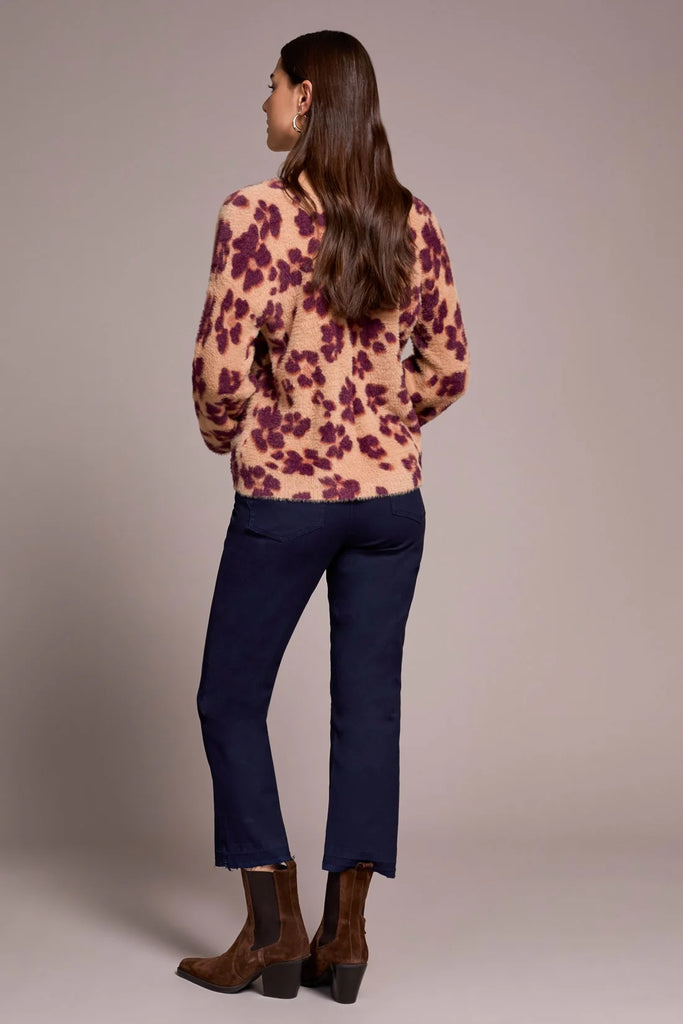 Wear this super soft, floral print sweater to infuse your everyday style with chic charm and delightful comfort. This sweater can be worn with as a v-neck in the front or a v in the back. Crafted from soft eyelash yarn, it features a flattering pop-over v-neck design and long bishop sleeves, imparting an airy feel and fashionable flair to your ensemble.