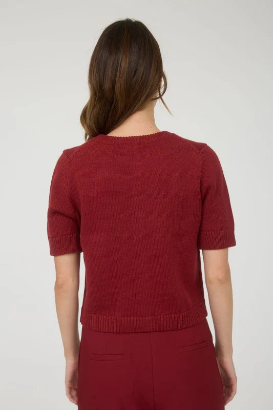 Short Sleeve Button Down Knit Cardigan Sweater -- Burgundy