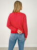 Stripe Button Down Raw Edge Knit Cardigan -- Red